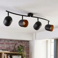 LAMPENWELT Plafonnier à Intensité Variable ‘Yos’ En Métal Pour Chambre à Coucher – Noir, Doré Brossé