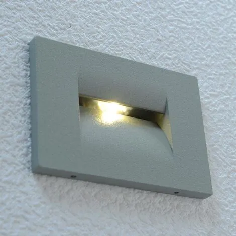 Le projecteur LED encastré Nevin est en aluminium gris argenté et il a été conçu pour être intégré au mur. Son ampoule LED est solidement fixée à la lampe et la lumière qu’elle diffuse est indirecte.