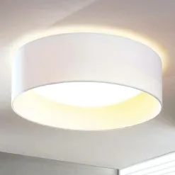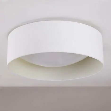 Le plafonnier Franka possède un abat-jour en tissu blanc qui s’utilise de diverses manières. Sa face inférieure consiste en un diffuseur courbé en plastique qui assure une douce répartition de la lumière.