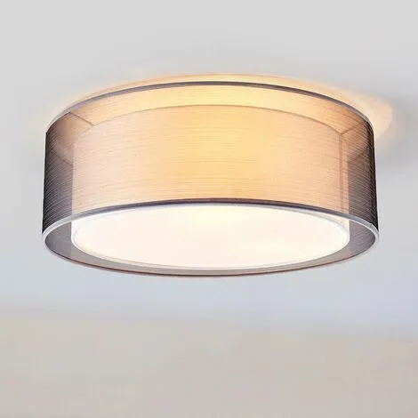 Le plafonnier Nica possède un attrayant double abat-jour dont l’extérieur est gris translucide et l’intérieur blanc. La lumière qu’il diffuse est chaleureuse et agréable.