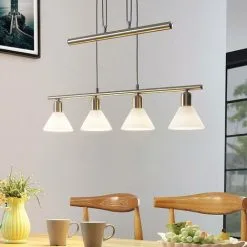LAMPENWELT Lustre à Intensité Variable ‘Tadina’ En Métal Pour Salon & Salle à Manger – Laiton